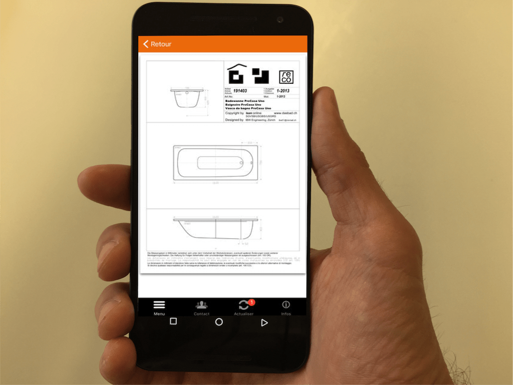 L’application Gétaz Pro reprend le catalogue sanitaire de Gétaz-Miauton avec toutes les informations produits. Ainsi, vous obtenez rapidement les informations nécessaires où que vous soyez, sans avoir à transporter un lourd catalogue. Une navigation simple et diverses fonctions de recherche vous permettent de travailler efficacement.